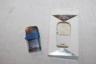2 Vintage Scripto Slim Cigarette Lighter Vue Blue/White Trim Infinity, Starburst