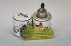 Vintage Strikalite Trench Table Lighter Elfinware Hand Painted Ceramic Flowers