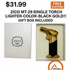 ZICO MT-29 SINGLE TORCH LIGHTER-COLOR-BLACK GOLD!! GIFT BOX INCLUDED
